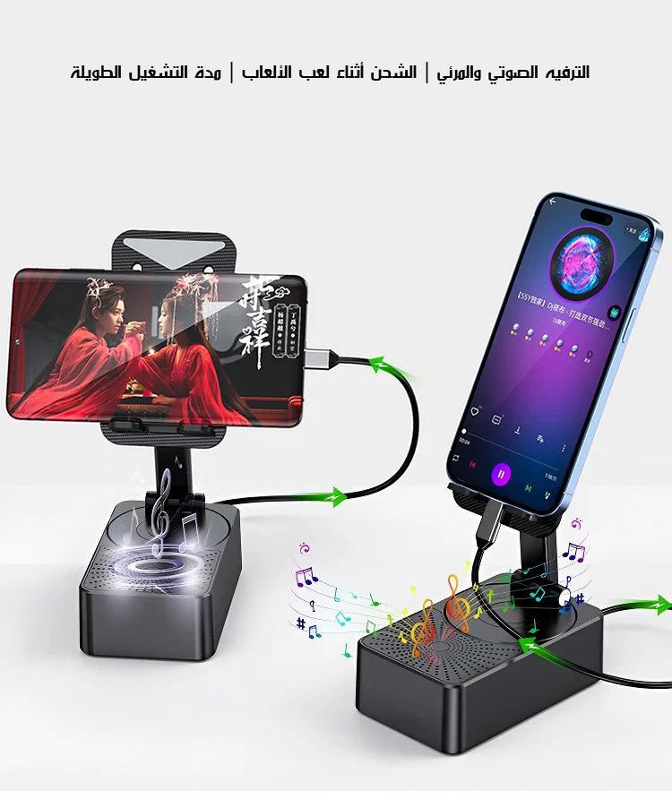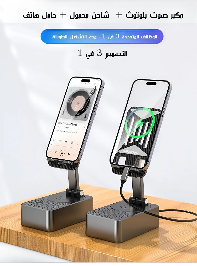 حامل الهاتف ومكبر الصوت والشاحن المحمول 3 في 1