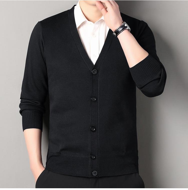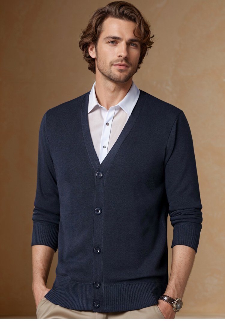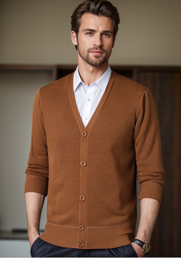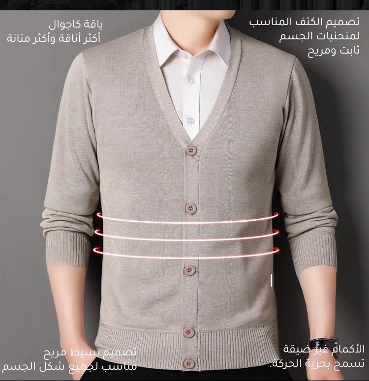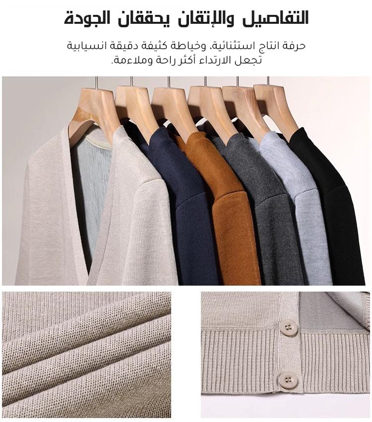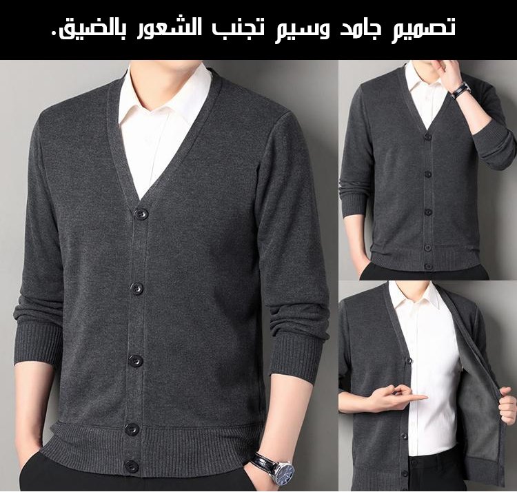 سترة منسوجة بياقة قميص وبطانة صوف سميكة للرجال